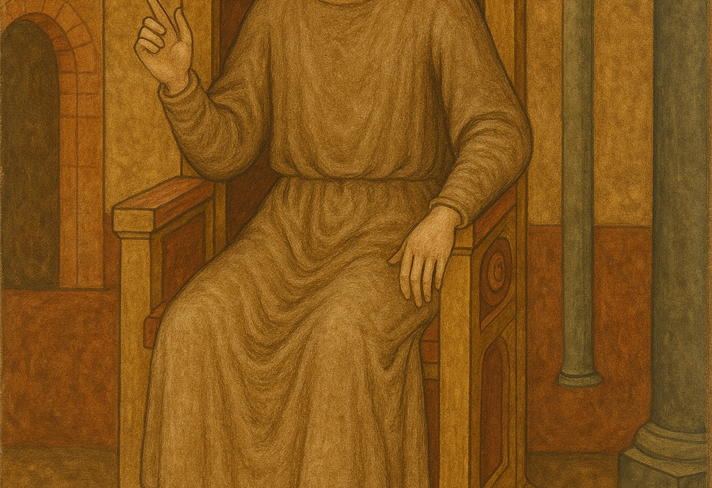 We entered upon the king in a large hall. A man was sitting on a throne, wearing a coarse shirt and coarse trousers, as if showing asceticism.